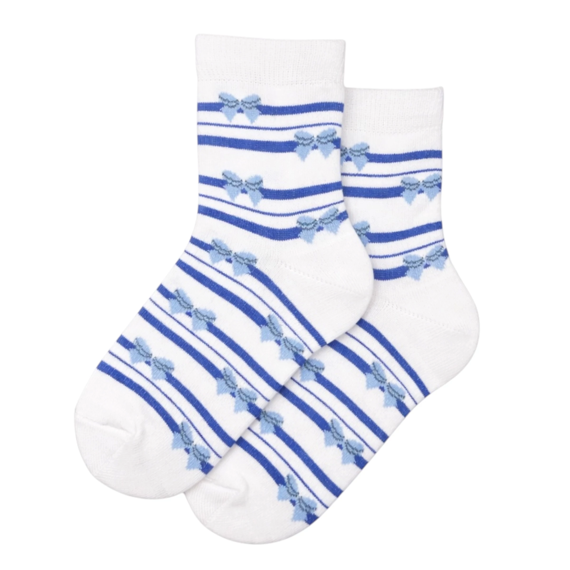 Gyermek rövidebb szárú bokazokni - kék csíkos masnis