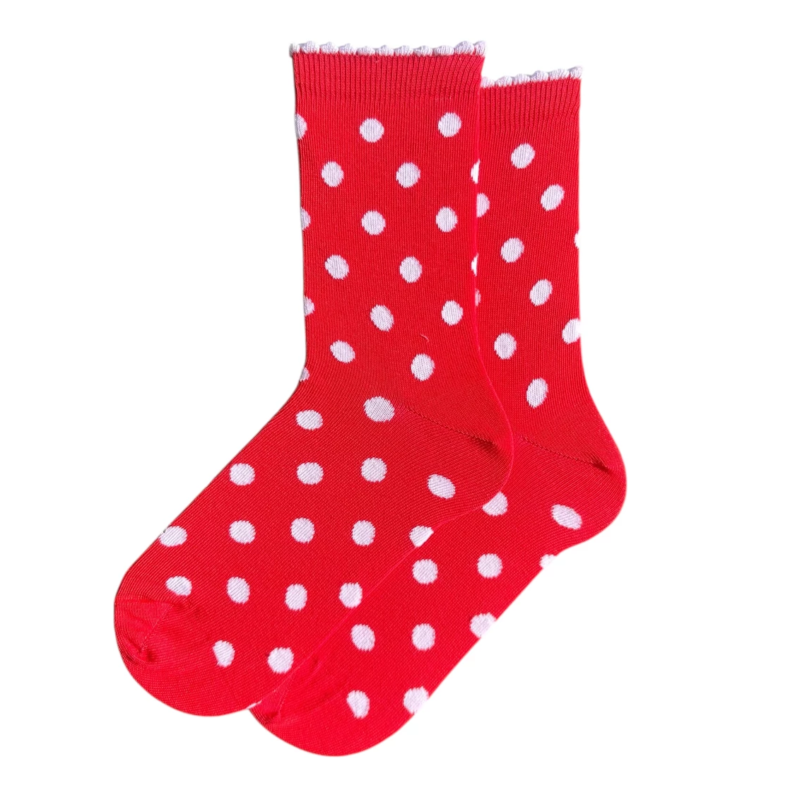Női bokazokni piros-fehér pöttyök